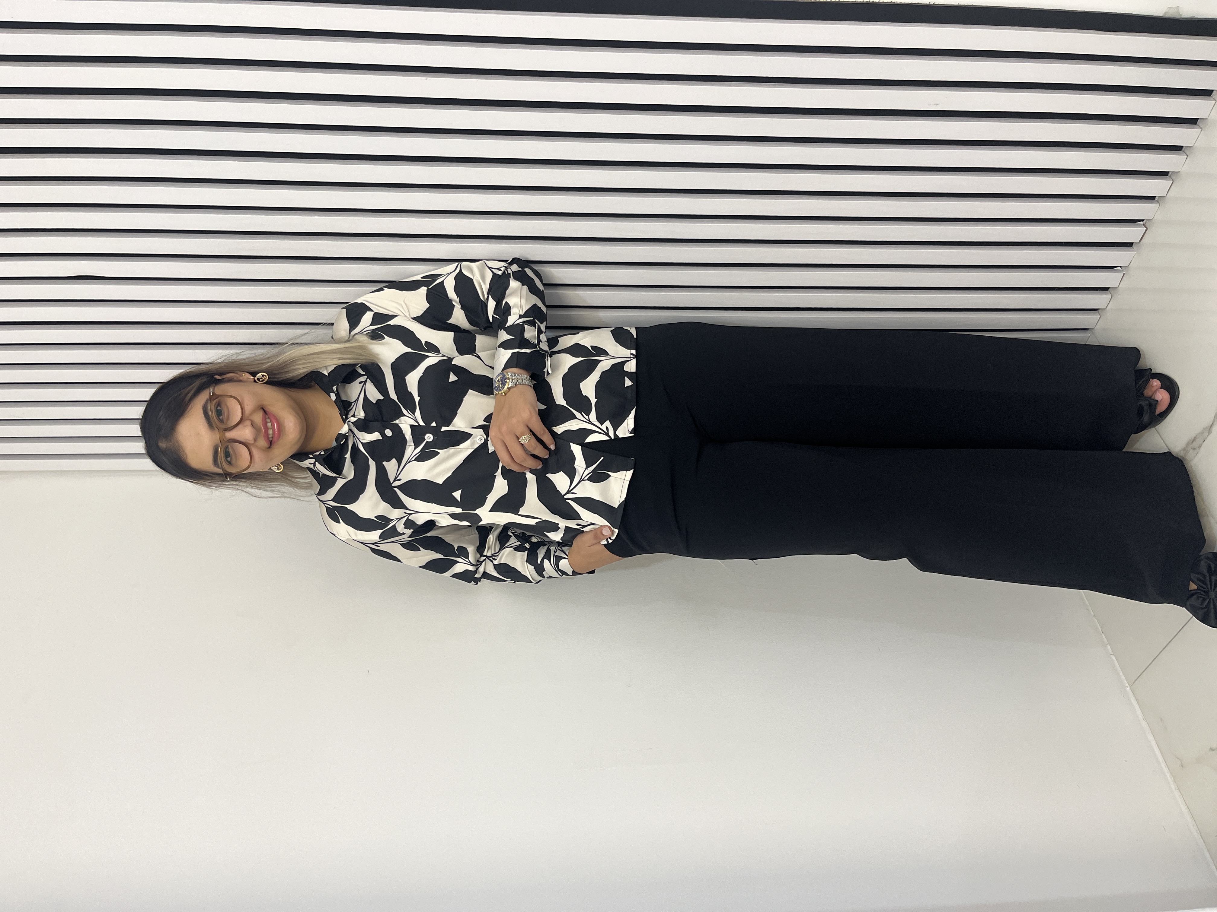 شومیز ساتن طرح برگ